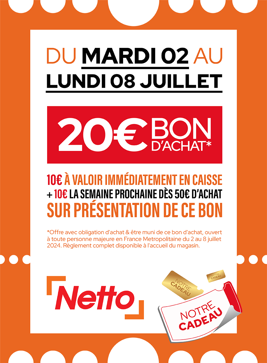 Votre magasin Netto Saint-Genix-Sur-Guiers fait peau neuve, profitez d'une offre exclusive !